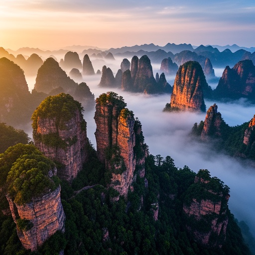 若论奇峰之冠,张家界的石英砂岩峰林必占一席。三千余座石峰拔地而起,如剑如戟,直指苍穹。行走于金鞭溪畔,仰视这些历经泥盆纪海底沉积、又经喜马拉雅造山运动抬升与流水切割的杰作,方能体会“缩小的仙境,放大的盆景”之意。云雾缭绕时,峰顶若隐若现,仿佛悬浮于空中,这便是《阿凡达》中“哈利路亚山”的灵感源泉,是地球赠予人类的科幻实景。